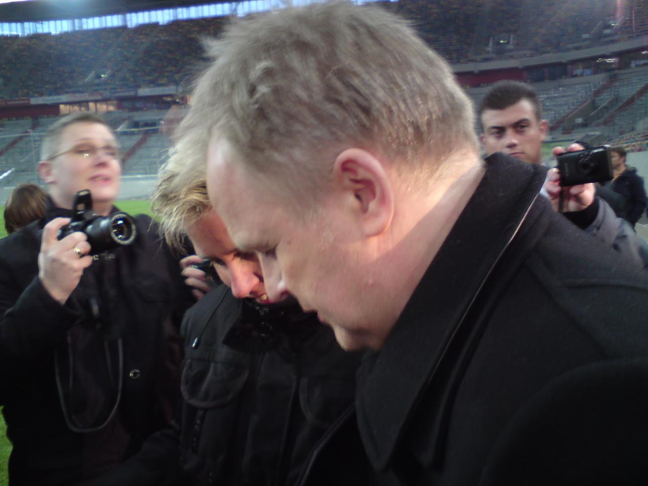 Na, alle PK-Teilnehmer von HH und Ddorf wieder einigermaßen auf dem Boden der Tatsachen zurückgekehrt? ;) Man war dat gestern geil, hm? Ich bin immer noch nicht ganz von meinem Tripp runter. Ich hatte mich über NDR2 beworben. Ich weiß nicht wieviele wir in HH genau waren, schätze so auf 20 bis 25 Fans. Meine beiden größten Highlights waren ohne Zweifel der Photocall auf'm Rasen und der Moment, als ich Herbert während der PK die Abschlussfrage stellen durfte. Leider durften wir Fans in HH nicht wirklich Fragen stellen. Ich war die Einzige, die das Glück hatte, und das wohlmöglich auch nur, weil mich das Hamburg Journal begleitet hatte, die sich dann während der PK dafür eingesetzt haben, dass wenigstens eine Frage von den Fans gestellt werden darf. Das war das Einzige, was ich wirklich sehr sehr schade fand :\').