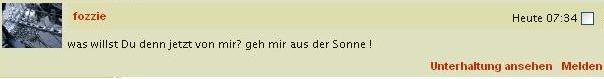 Ich habe Christian gebeten meine Mitgliedschaft zu löschen :´( :´( :´( Einige wenige glauben (oder hoffen) hier die Meinung bestimmen zu könen. Jeder, der das nicht akzeptiert, wird hier angegangen. Das könnt Ihr so machen, nur ab jetzt ohne mich. Vier Jahre, fast 7oo sinnvolle Beiträge sind genug. Mit den letztn habe ich den Mob gekizelt und er hat in der erwarteten Form reagiert. Immer feste druff und dann gemeinsam ablachen. Diesen Leuten wünsche ich mal auf der anderen Seite zu stehen und sich dann richtig scheisse zu fühlen.:oops: Allen anderen weiterhin viel Spass hier, oder auch woanders. schönen Abend noch..... fozzie |