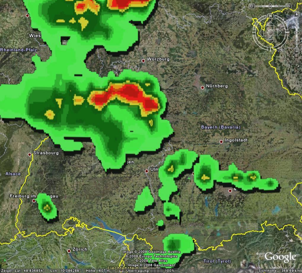 So, das Wetter scheint abzuziehen, hier der aktuelle Regenradar. Aalen liegt genau und er Bildmitte verdeckt unter dem hellgrünen Bereich. Die Front zieht nach Norden davon.