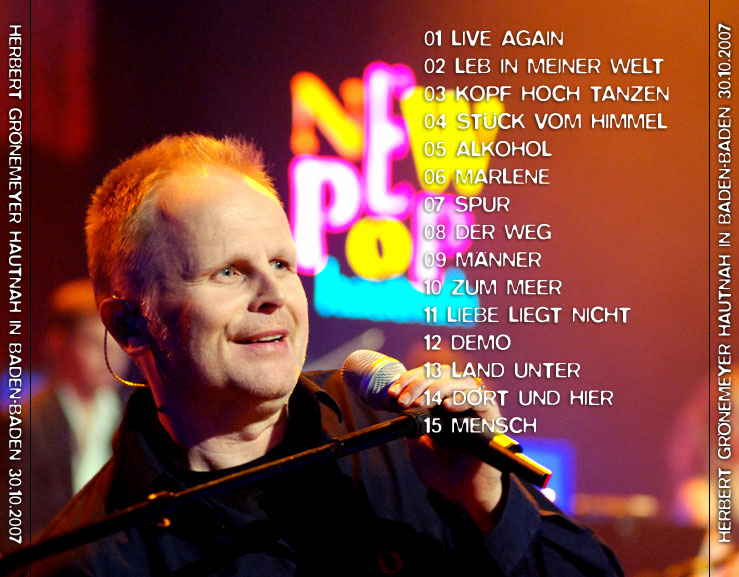 Also ich habe dank eines netten Menschens nun Der Weg, Männer, Stück vom Himmel und Kopf hoch, tanzen vom Baden-Baden Konzert....schwirren hier noch der ein oder andere Mitschnitt im Raum, der auf dem Weg zu mir sein könnte??? DAS WÄRE SUPER !!!