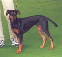Ist ein Dobermann... des hier is net so verwackelt...hoffe, man erkennt den Süßen:) |