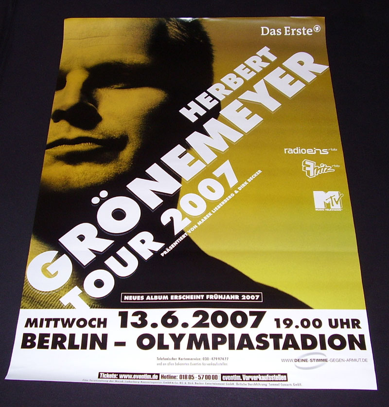In Berlin in einem CD Laden hatten sie zwei Grönemeyer Tour Plakate. Ich war echt versucht eins abzureissen. Habs mir dann doch überlegt, wegen Eigentum und Sachbeschädigung und so...