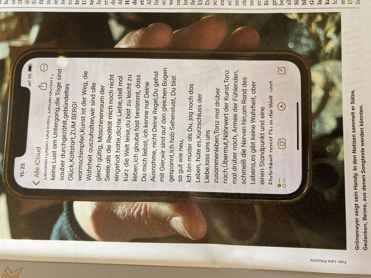 Schön auch ein Foto von Herberts iPhone-Notizen - "tanz mal drüber nach" zumindest scheint es ja aufs Album geschafft zu haben ![]() |