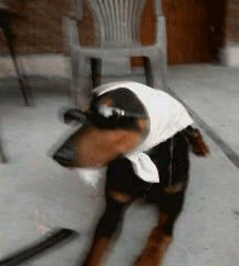 Ist ein Dobermann... des hier is net so verwackelt...hoffe, man erkennt den Süßen