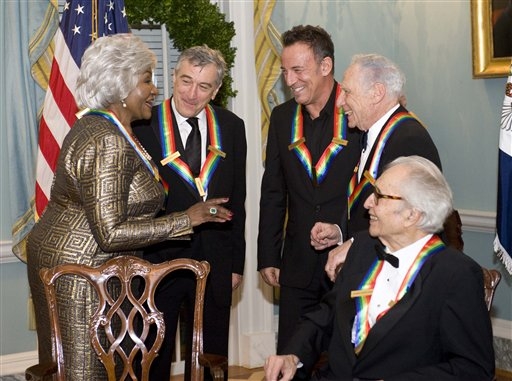 Hollywoodstar Robert De Niro, Regisseur Mel Brooks und US-Rocker Bruce Springsteen werden am 5. Dezember 2009 vom renommierten Kennedy Center für ihr Lebenswerk geehrt. "Dieses Jahr ehrt das Kennedy Center fünf außergewöhnliche Menschen, deren einzigartige Kunst entscheidend zum kulturellen Leben unseres Landes und der Welt beigetragen hat", erklärte Vorstandschef Stephen Schwarzman. Nachfolgend seht Ihr sehr schöne Augenblicke, wie ich finde! Mir haben gerade die Reden gefallen, nicht so abgedroschen oder oberflächlich. Einige hier lesen ganz gerne mal Infos über Bruce und werden diese Ausschnitte hier sicherlich genießen! Rede des Präsidenten Obama: "I'm the president, but He is the Boss"
