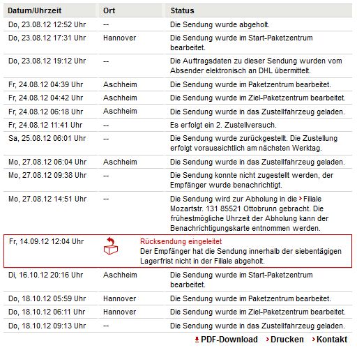 ![]() Ich habe viele Kontakte zu gewerblichen Internethändlern, die DHL-Verträge haben. Von dort hört man täglich die größten Schreckensmeldungen. Schief gehen kann immer mal was, auch bei anderen Versendern, aber dort häuft es sich aktuell ganz extrem. Das sieht dann schon mal so aus: