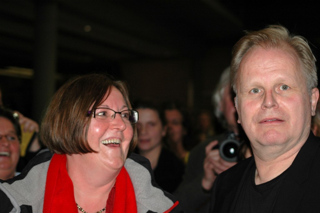 Es hat wirklich Spass gemacht, den beiden zuzuhören und vor allen Dingen Herbert zuzugucken. Und nochmal was Neues über die Bedeutung von so manchem Liedtext zu erfahren. Sehr schön fand ich auch, dass Herbert das ein oder andere Gedicht von seinen Lieblingsdichtern vorgelesen hat. Und ganz zum Schluss, als er aus dem Stegreif 2 Kalauer von Heinz Erhardt zum Besten gab. Da war dann kollektives Lachen angesagt. Nach der Verabschiedung dachte ich schon, dass das mit Fotos und Autogrammen nichts werden würde, aber Herbert war dann ruckzuck von einer Traube von Menschen umgeben. Na - und wir auch rein ins Getümmel. Ich hab ihm sogar 2 Fotos mit mir untergejubelt innerhalb von 5 min... Ein absolutes Highlight in meiner persönlichen Herbert-Geschichte... ![]()