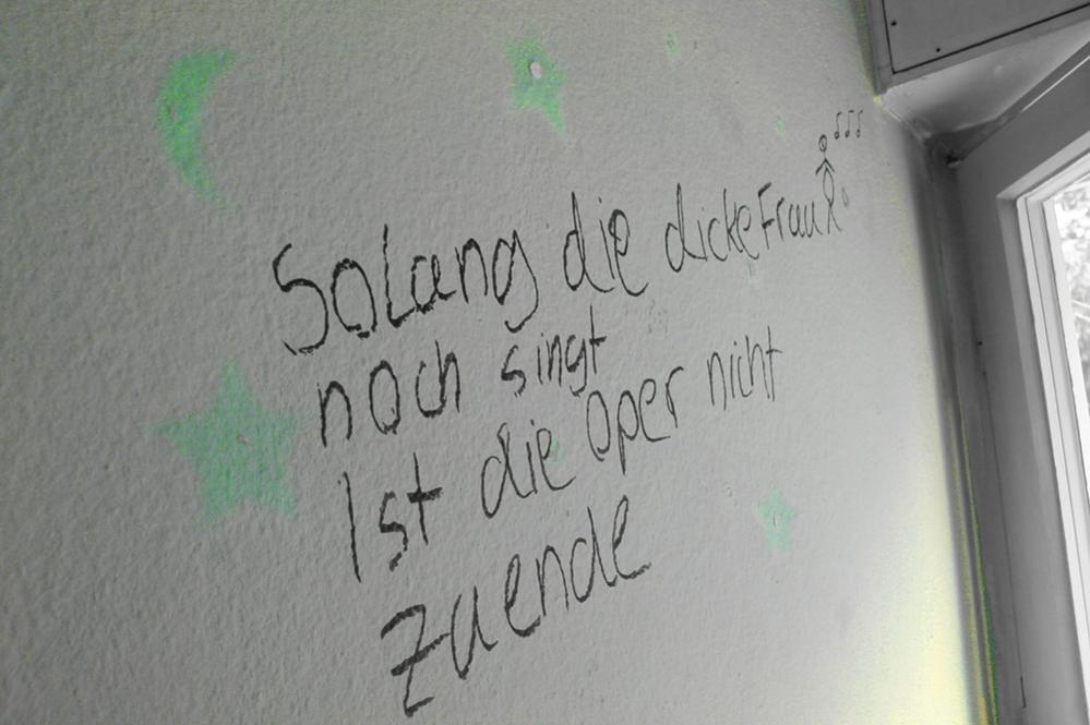Ich hätte vielleicht dazu sagen müssen dass die Tapete kurz darauf abgerissen worden ist, ich glaube das hätten meine Eltern in unserem zukünftigen Gästezimmer wohl nicht geduldet Aber einmal mit Edding auf ne Wand malen wollte ich einfach
