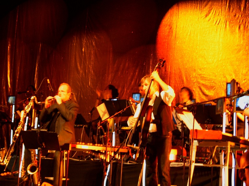 - was auch sehr schade gewesen wäre, denn sonst hätte ich einige neue Gesichter nicht kennenlernenen und bekannte Geischter nicht wieder treffen dürfen (ist schon ne nette Truppe hier)Ich fand die Atmosphäre im Circus so wunder schön...meistens eher dunkel beleuchtete Bühne (schlecht für Fotos In meinem Block (Ringplatz rechts) saßen noch Vollmond und Heimat neben mir (erste Reihe) und schräg hinter uns Currywurst und MoccaAugenBridget. Der Block rechts neben uns war auch ncoh recht stark lv-besetzt . Wir sind schon beim zweiten Lied (Kopf hoch, tanzen!) aufgestanden - ich meine Herbert forderte das ja. Zu der Zeit standen noch nciht wirklich viele und so haben wir uns danach zumindest bei den ruhigerern Liedern wieder brav hingesetzet, zur Erleichterung der Persönen hinter uns Ach, ich könnt noch so viel weiterschärmen..... schade dass für mich ein weiteres Konzert einfach nicht drin ist.... Aber das durfte ich erlben und behalte es in Erinnerung. Ich hänmg nochmal was von meinen shclechten Fotos an, diesmal v.a. von der Band: beim dritten bild sieht man schön die ungewohnten Instrumente wer errät welches Lied beim vierten Bild läuft/endet? die meiste zeit hatte ich leider Gegenlicht (5. Bild) beim letzten Bild sagte Herbert, es lässt jetzt auch mal die anderen nach vorne, aber NUR FÜR EIN LIED, dann müssen sie wieder nach hinten