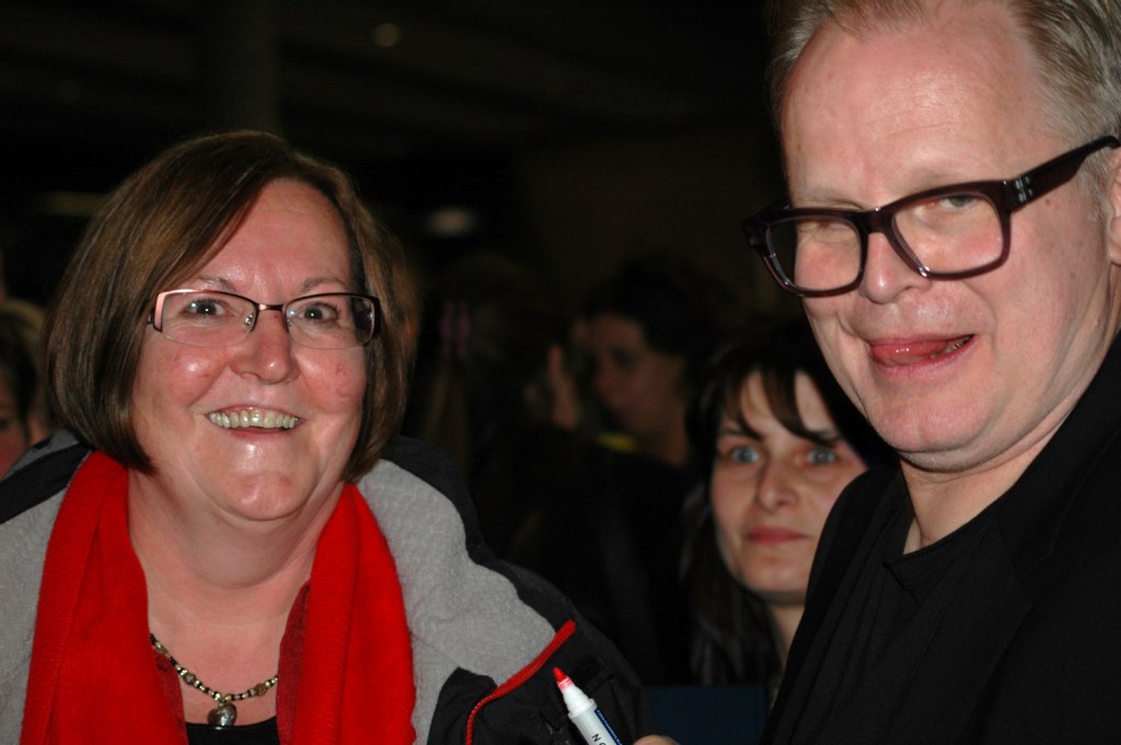 Es hat wirklich Spass gemacht, den beiden zuzuhören und vor allen Dingen Herbert zuzugucken. Und nochmal was Neues über die Bedeutung von so manchem Liedtext zu erfahren. Sehr schön fand ich auch, dass Herbert das ein oder andere Gedicht von seinen Lieblingsdichtern vorgelesen hat. Und ganz zum Schluss, als er aus dem Stegreif 2 Kalauer von Heinz Erhardt zum Besten gab. Da war dann kollektives Lachen angesagt. Nach der Verabschiedung dachte ich schon, dass das mit Fotos und Autogrammen nichts werden würde, aber Herbert war dann ruckzuck von einer Traube von Menschen umgeben. Na - und wir auch rein ins Getümmel. Ich hab ihm sogar 2 Fotos mit mir untergejubelt innerhalb von 5 min... Ein absolutes Highlight in meiner persönlichen Herbert-Geschichte... ![]()