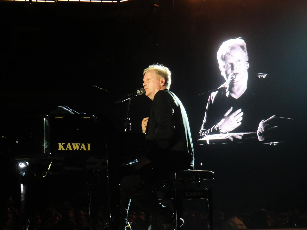 Um etwa 15:10 war ich in Leer, von wo um 15:30 der Bus nach Aurich fahren sollte. Also versuchte ich mein Glück mit einem sehr knapp beschrifteten Tramperschild an einem Kreisverkehr vorm Leerer Bahnhof, das mir aber nicht hold war. So bestieg ich den Bus nach Aurich, der um 16:20 am ZOB ankommen sollte, der weder in der Nähe des Stadions liegt noch am Wochenende per Bus damit verbunden ist und schon gar nicht auserwählt war, um dort wenigstens die gebührenpflichtigen Shuttlebusse starten zu lassen. Zum Glück war der Busfahrer äußerst gut drauf (ein dialektisch sehr ostfriesisch geprägter Mensch, der sein Hemd bis zum Bauchnabel aufgeknöpft trug und sich auch nicht scheute, auf den Landstraßen zwischen den Ortschaften teilweise 2 Autos am Stück kurz vor einer engen Kurve zu überholen), bot mir an, mich 4 Haltestellen weiter mitzunehmen als ich eigentlich durfte, weil sich die Entfernung zum Stadion so von 6,2 auf 3,4 km verkürzte; dort am EEZ (steht für Energie-, Bildungs- und Erlebniszentrum; heißt aber dennoch nur EEZ und nicht EBEZ) angekommen erklärte er mir noch kurz den Fußweg, für den Google Maps 41 Minuten veranschlagt, und an welchem Imbiss man die Straße wechseln muss. So machte ich mich auf den Weg, war gezwungen, links auf einem Fahrradweg zu gehen, da rechts kein begehbarer Weg war (nicht nur das unterscheidet Aurich von Dresden), nahm mein Gepäck in die linke Hand, das Trampschild mit der Schrift nach hinten in die rechte und marschierte schnellen Schritts los, phasenweise sprintete ich, womit ich mich aber um kurz vor 5 noch nicht völlig verausgaben wollte. Auf mein Trampschild gab es eine einzige Reaktion und zwar ein Hupen und Ausdemfensterjohlen; dem FRI-Kennzeichen entnehme ich, dass es wahrscheinlich Lokaldeppen waren und niemand von hier (ich muss kaum dazuschreiben, dass sich meine Erwartung an die allgemeine Konzertgängersolidarität, nach der das auf dem Weg zum Konzert volle Auto mir im erleichterten Zustand zum Einsammeln wieder hätte entgegenkommen sollen, nicht erfüllte). Am besagten Imbiss angekommen wurde mir der weitere Weg erklärt, er war sehr einfach zu finden und ich war statt nach den veranschlagten 41 Minuten schon nach 32 dort; es stand zwar schon ein gewaltiger Pulk vor den Schleusen, aber ich hielt es angesichts des von dort schon sichtbaren Laufstegs für durchaus möglich, wenigstens sicher in der 2. oder 3. Reihe stehen zu können. Doch daraus sollte nichts werden, denn manches, was den Ostfriesen nachgesagt wird, wurde gestern an mancher Stelle nicht grundlegend widerlegt, und so kam es, dass ich es im allgemeinen Gedränge zwischen 2 vollbesetzten Schleusen an eine fast leere schaffte, die wohl nicht wirklich als solche erkannt wurde, der Kontrolleur nahm mir meine Flasche ab (und sah es damit wohl als erwiesen an, dass er mich sämtlicher Getränke entledigt hatte...aber der triviale Hosen- und Jackentaschentrick funktioniert fast überall) und dann rannte ich und rannte und rannte, musste mir meinen gelben Hut aus Mainz festhalten, kein Ordner stand im Weg rum und die meisten anderen Besucher schlenderten gemütlich vor sich hin, ich meine auch mich nicht verhört zu haben, dass es bezüglich meines Rennens mindestens einen Kommentar gab, der irgendwo zwischen einem Anfeuern und einer angewiderten verächtlichen Äußerung lag. Wider Erwarten war die Ecke vorne rechts am Laufsteg noch unbesetzt, zu meinem Glück standen dort 2 langhaarige junge Männer, die ihren T-Shirts nach eigentlich andere Musikveranstaltungen besuchen, die mir den Platz für den Klogang freihielten und sich selbst nicht in die 1. Reihe begaben, obwohl noch Platz gewesen wäre (die auch später aus vollen Lungen Jeder für jeden mitsangen, das ich, wie ich gestehen muss, noch nicht verinnerlicht habe). Und auch anders als sonst standen vorne vorm Steg 2 nette Ordner, die beiweitem nicht solche Arschlöcher waren wie schon oft erlebt, sie plauderten mit den Zuschauern (der kleine gemütliche mit den aufwendigen Ohrpiercings, der Glatze und dem Rauschebart erzählte, dass er vor kurzem auf einem PUR-Konzert Dienst hatte und seine einzige Aufgabe darin bestand, ebenfalls am Stegende zu stehen, aber nicht, um Hartmut Engler vorm Publikum zu schützen, sondern davor, von der Bühne zu fallen, was beim Konzert davor der Fall gewesen war; der riesige (sowohl in Höhe als auch in Breite bemessen riesig) Ordner antwortete auf die Frage, wie viele Leute ins Stadion passen, mit viele, und schmetterte den Wunsch nach einer Präzisierung damit ab, dass er Ostfriese ist und eins, zwei, viele zählt, bei drei ist leider schon Schluss), versorgten bei Bedarf mit Ohrstöpseln und Gummihandschuhen und wurden im Verlauf des Abends mit Crackern und Weingummi gefüttert. Zu Knackeboul (der in Gelsenkirchen als [knäckebühl] und in Aurich als [knäckebowl] angekündigt wurde), den ich verglichen mit dem, was einem sonst als Vorband vorgesetzt wird, spitzenmäßig finde, möchte ich kurz erwähnen, dass er es als wesentlichen letzten Punkt seines Auftritts sah, den Regen zu beenden, wozu er spontan ein Lied mit dem Namen "Regen, Du musst jetzt gehn" kreiert hatte. Als es kaum ausgeklungen war, hielt er die Hand unter den freien Himmel und fragte irritiert: "Wie, es hat wirklich aufgehört zu regnen? Wollt Ihr mich verarschen?!" Und es hat, soweit ich es mitbekam, bis morgens um halb 6 in Aurich keinen einzigen Tropfen mehr geregnet! Im Laufe des Hauptblocks fiel mir ein, dass meine Position dazu führen könnte, dass ich bei Alkohol mitdingen darf, er kam bei besagtem Lied auch an mir vorbei und stellte sich einen Meter weiter auf die Erhöhung, eine Frau in der 1. Reihe nutzte spontan die Gelegenheit, ihm deutlich länger als einen flüchtigen Augenblick an den Bauch zu fassen. So sehr den Norddeutschen im Allgemeinen und den Ostfriesen im Speziellen auch nachgesagt werden mag, sie seien etwas gehemmt in mancher Hinsicht und so wenig diese Grabscherei dazu passt, so 