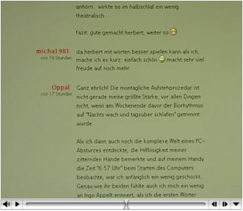vielen dank für den link! jetzt konnt ichs auch sehen! zitate von steffi_84, micha1981, oppal und astroflex waren zu sehen...